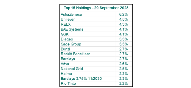 The top holdings are very little changed. GSK had a much better quarter with some encouraging new drug approvals coming through. Sage Group had another good quarter, and RELX have been a stand-out performer all year. The infrastructure companies remain under a cloud with higher long-term interest rates only adding to the pressure. Target Healthcare appears to have ‘found a level’ and has gained modestly this quarter. All of the conventional fixed interest holdings gained a few percentage points, the Barclays 3.75% issue has crept into the list of top holdings. The index-linked issues were marginally lower overall, notably the longest-dated holding, the Heathrow Funding 3.334% 2039.