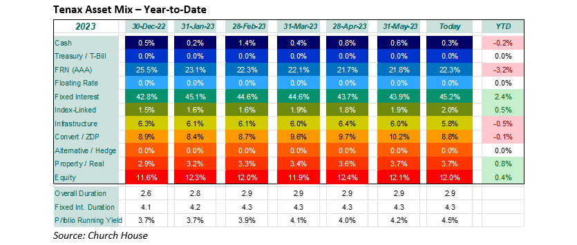 The asset mix within the Fund, shown below, reflects these considerations, with a bias towards short-dated sterling fixed interest. Clearly, we can’t be certain when the current pressure on rates will subside, but the short time to maturity of these bonds and high redemption yields (7.3% for the Fixed Interest portion) gives us a high degree of confidence in the returns.