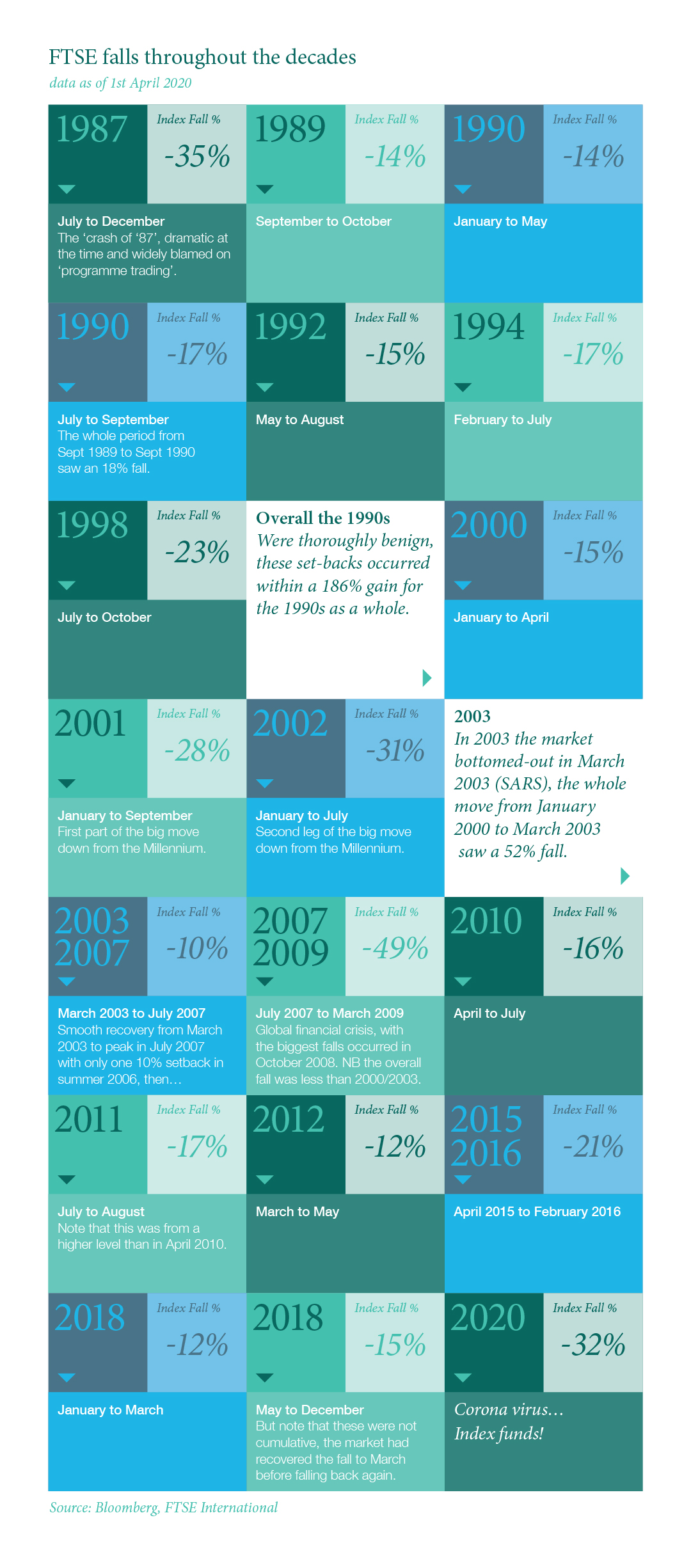 After coming perilously close to hitting all-time highs in January, the FTSE 100 took a substantial hit, falling almost 15% from January peak to end of February’s trough.