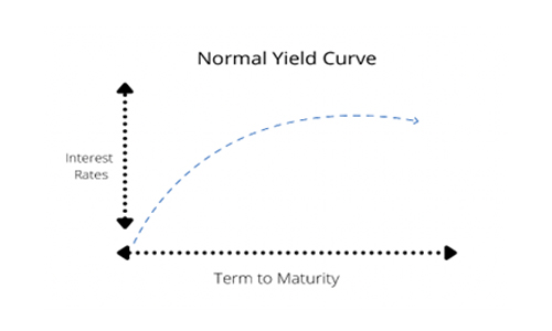 The aforementioned diagram above shows a normal yield curve, with interest rates steadily rising as bond durations increase. This indicates that the market expects moderate growth and reasonable availability of credit. This represents a thriving economy, with no major concerns predicted.